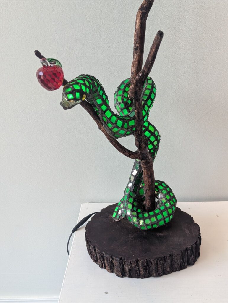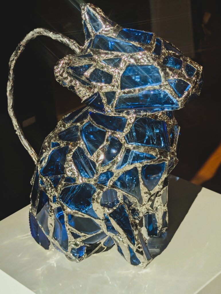 Discover a gallery where myth and light merge in captivating stained glass sculptures.
